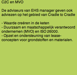 - cradle2cradle (C2C), sluiten van materiaal kringlopen, maatschappelijk verantwoord ondernemen (MVO)